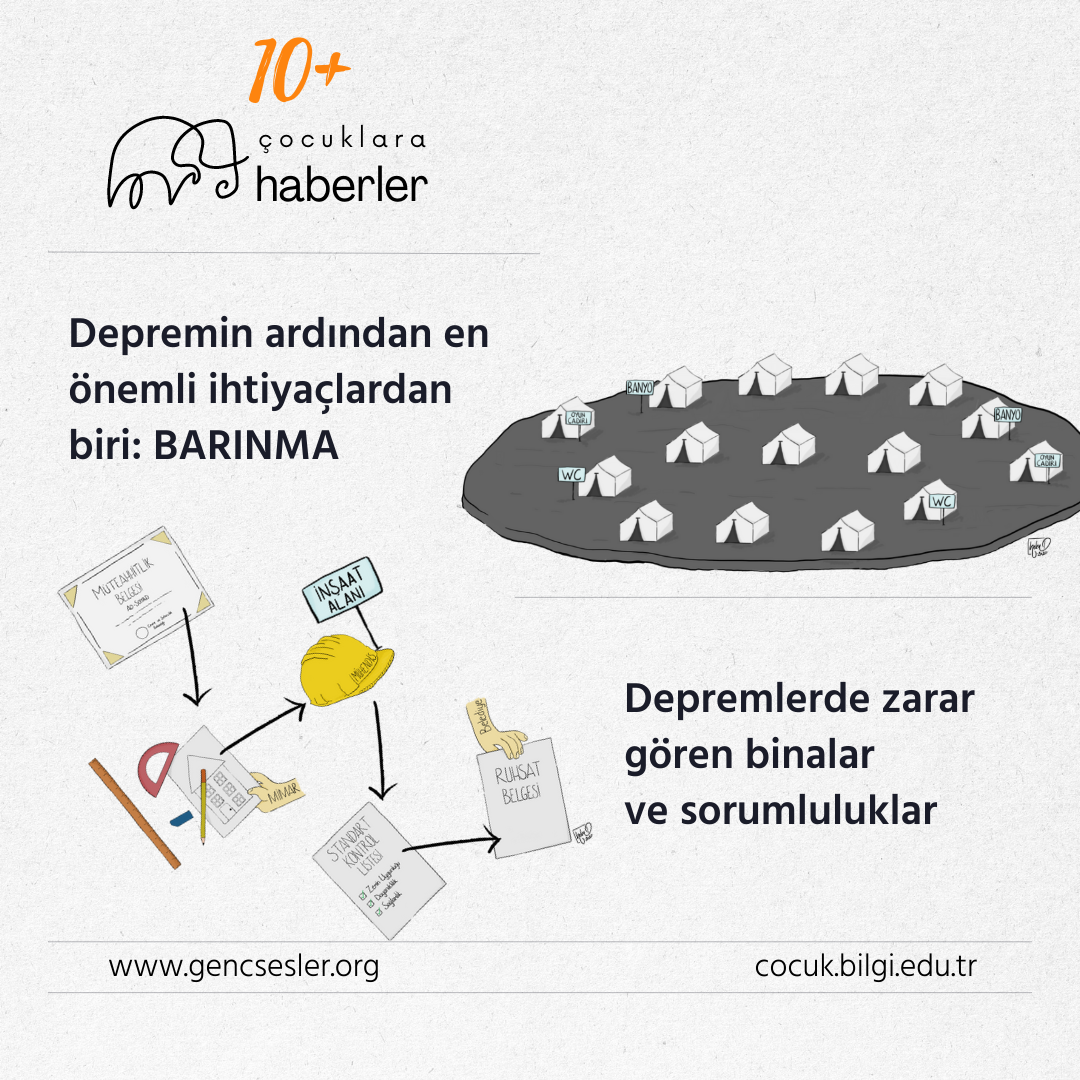 Depremden etkilenen bölgelerde bulunan binaların bir bölümü yıkıldı, büyük bir bölümü ise hasar gördü. Depremlerin ardından evlerin risk durumunu tespit etmeden ve güvenli olduğuna emin olmadan orada yaşayan kişilerin evlerine girmeleri çok risklidir. Evi hasar alan ya da yıkılan insanların güvende olmasını sağlamak için geçici barınma alanları oluşturulur. Buralara sıklıkla “çadır kent” de denilir. En son yapılan resmi açıklamalara göre depremden etkilenen 11 ilde 332 farklı yerde geçici barınma alanları oluşturuldu. 365.537 çadır kuruldu. Sosyal medyada çadır ihtiyacının devam ettiğine dair haberler de yer alıyor.