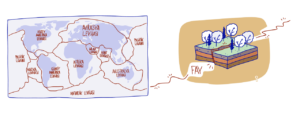 Yer kabuğu, levha dediğimiz tüm Yer’i saran çok büyük parçalardan oluşur. Bu levhalar Yer’i çevrelemek için birbirlerine çok yakın dururlar. Çok sıcak ve sürekli hareket eden mantonun üzerinde bulunurlar. Manto hareket ettikçe levhalar da biz farkında olmadan sürekli hareket ederler. Bu hareket sırasında birbirine çok yakın duran levhalar bazen birbirine sürtünür ya da birbirlerini iterler. Levhaların bu hareketler sonucu kırıldıkları yerlere “fay” denir. Levhalar birbirini sıkıştırdığında faylarda bazen ani kırılmalar ve yer değiştirmeler olur. Bu ani hareket büyük bir titreşim yaratır ve titreşim yer kabuğunun üzerindeki bizlere kadar ulaşır. İşte bizler de buna “deprem” deriz.